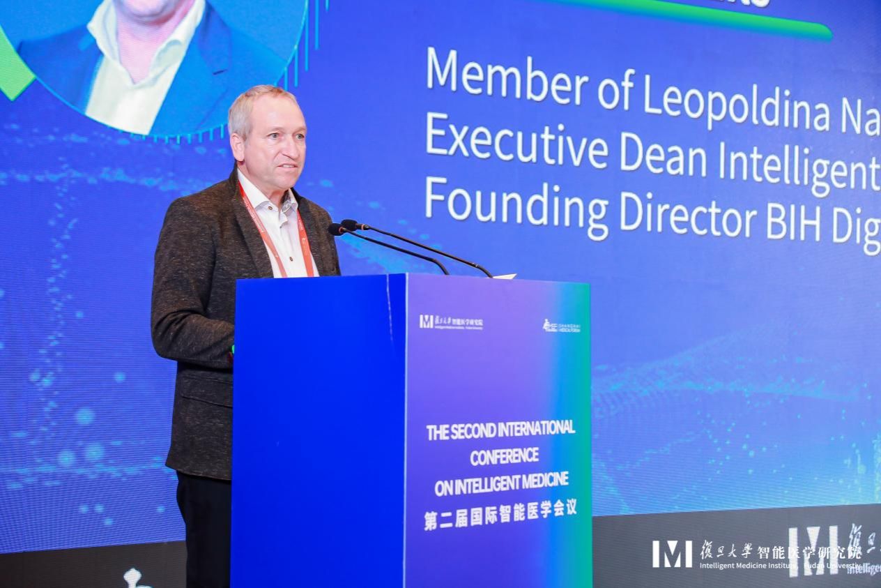 10月19日下午,第二届国际智能医学会议在上海龙之梦大酒店开幕。开幕式由复旦大学智能医学研究院常务副院长刘雷教授主持, 智能医学研究院执行院长、德国国家科学院院士Roland Eils教授致欢迎辞。他表示,人工智能正引领新一轮技术革命,深刻重塑医学科研、疾病预防与临床诊疗,期待本次会议成为智能医学领域具有国际影响力的交流平台。Eils院士特别感谢来自复旦大学及附属医院、国内外高校与研究机构的嘉宾与报告人莅临。随后,大会进入主题报告环节。