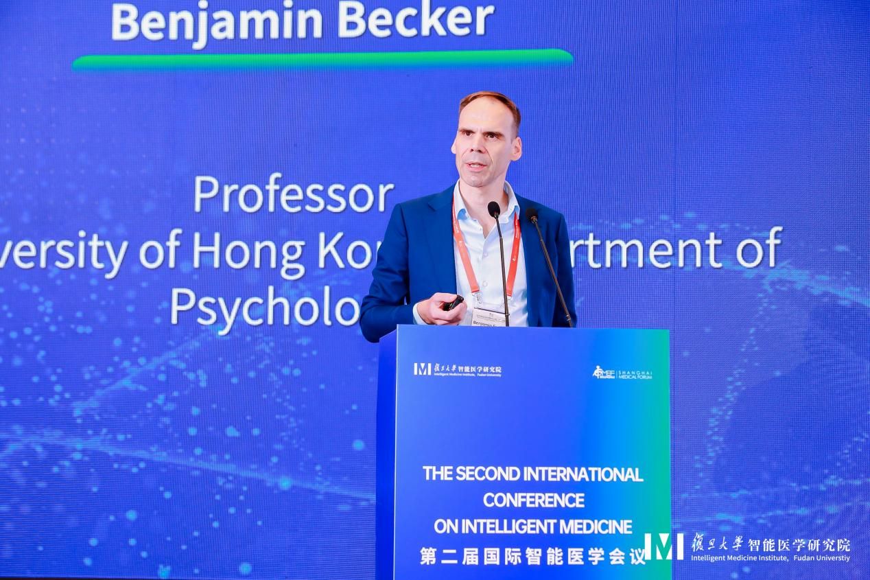 首先,香港大学心理学系教授Benjamin Becker以《AI, neuroscience and mental health: AI-inspired brain-based decoding and regulation of emotion》为题,介绍了团队利用AI与功能磁共振成像解码个体当下情绪,建立精确生物标志物,并将解码结果用于药物与干预评估的研究:在更接近真实情境的电影范式中,催产素可选择性降低“社会情境恐惧”神经签名,并在自闭症儿童试验中显现积极信号;同时研究揭示其依赖5-HT通路、存在性别差异与短期耐受的局限。团队转而系统性表征中枢,结合受体图谱与可及药物坎地沙坦在人类模型中的“靶点占领”,发现其可增强恐惧消退并促进以奖赏为导向的灵活学习,正与暴露疗法联用推进临床转化。Benjamin Becker教授强调,AI的交互性正直接调动人类“社交脑”,为心理治疗与认知重构带来新机遇,同时也放大了电诈与深伪等风险;呼吁技术与公共教育并举,发展可解释、可检验的神经生物标志物与个体化干预路径。