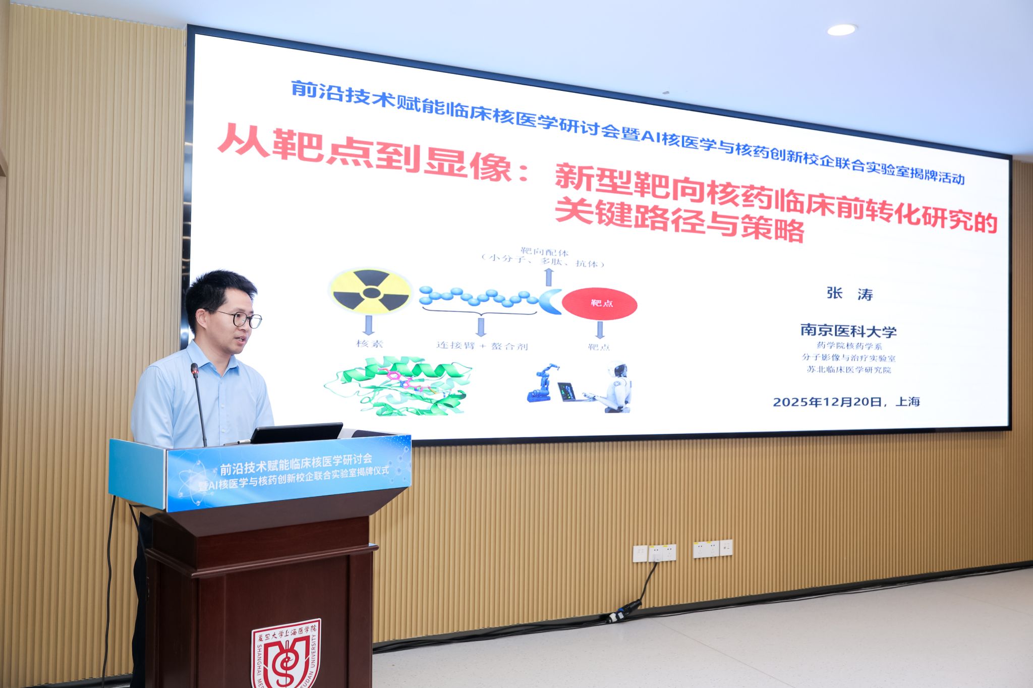 南京医科大学核药中心 张涛主任系统报告了《从靶点到显像:新型靶向核药临床前转化研究的关键路径与策略》,梳理了核药研发的全流程优化思路。